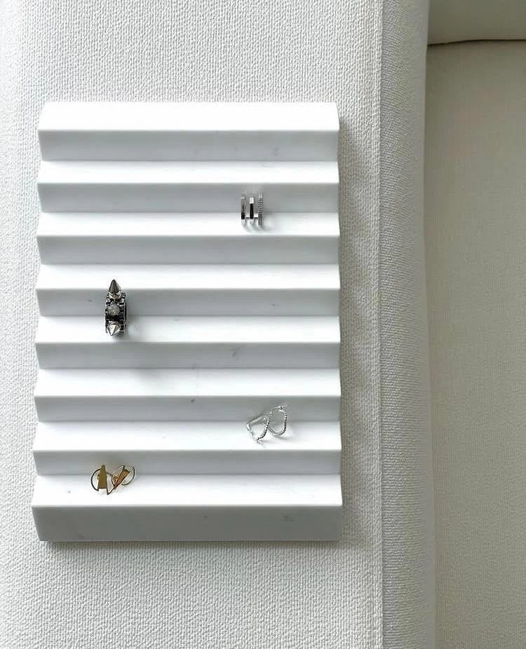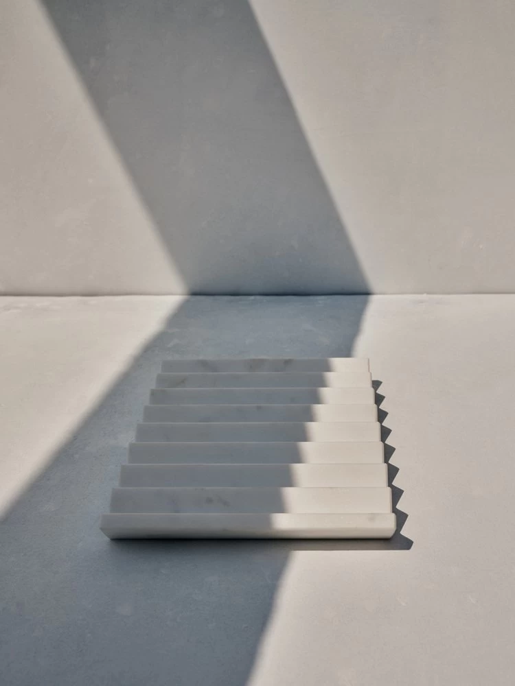 The Niis marble tray plays on minimalism, purity, and modernity, challenging the eclectic border between functional art and sculptural long-lasting design. Ideal for an office, living room, or bathroom, this piece combines apparent simplicity with rigorous geometry.