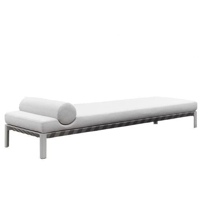 Outdoor daybed with cushion. Powder-coated stainless steel frame with removable cushion and cover. Base in Sand Grey finish. Outdoor upholstery.Â