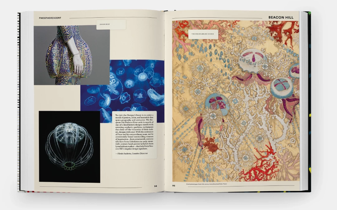 The book features case studies from major fashion and lifestyle brands – Beacon Hill, Boden, Calvin Klein, Clinique, Colefax & Fowler, Lululemon, Nike, Oscar de la Renta, Pottery Barn, Target, and Uniqlo – each presenting a unique design inspired by a pattern from the Design Library collection