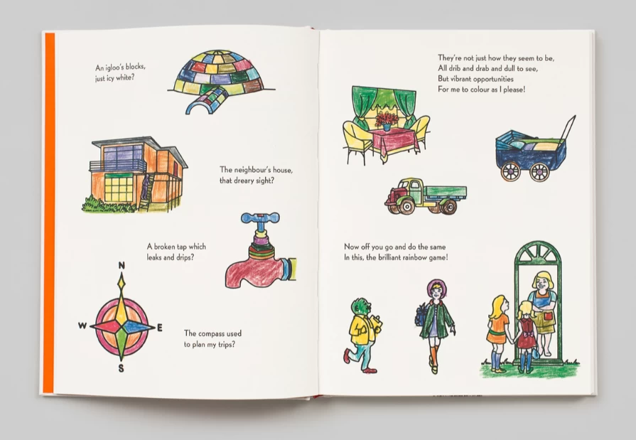 Rhyme Time is an unconventional illustrated book for children and all those with a healthy relationship to their inner child. Imaginatively combining retro images with new rhymes, the book brings visual nostalgia and the traditions of children’s verse up to date. The illustrations are 1960s line drawings Packham carefully colored-in as a child in 1988; now, more than 30 years later, he has rearranged these vibrant images into playful stories and captured them in rhyme. The unexpected results are both original tales, like that of Humphrey who chased a pesky elf from his garden with a cricket bat, and tongue-in-cheek reinterpretations of beloved fairy tales and nursery rhymes—if Snow White isn’t actually the fairest in the land, then who is? And why did Jack and Jill really climb that steep and nasty hill?