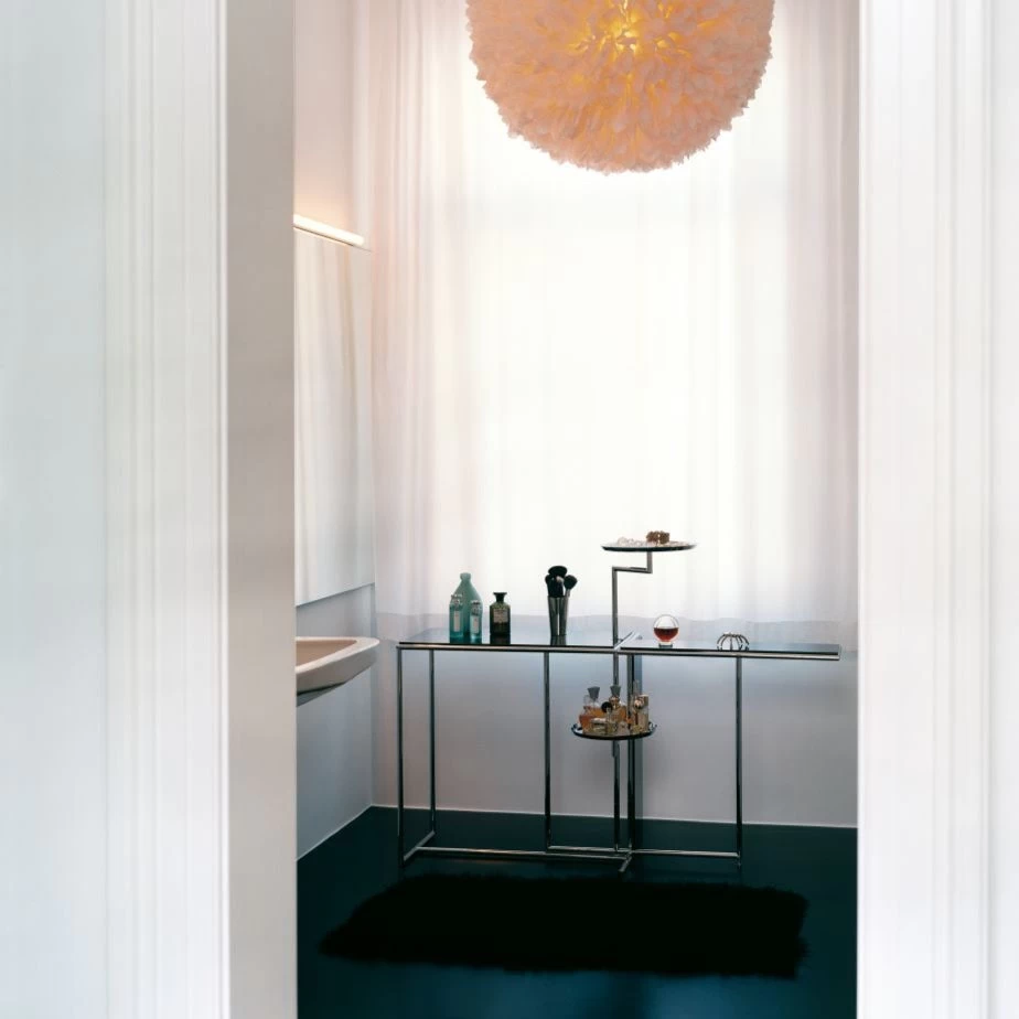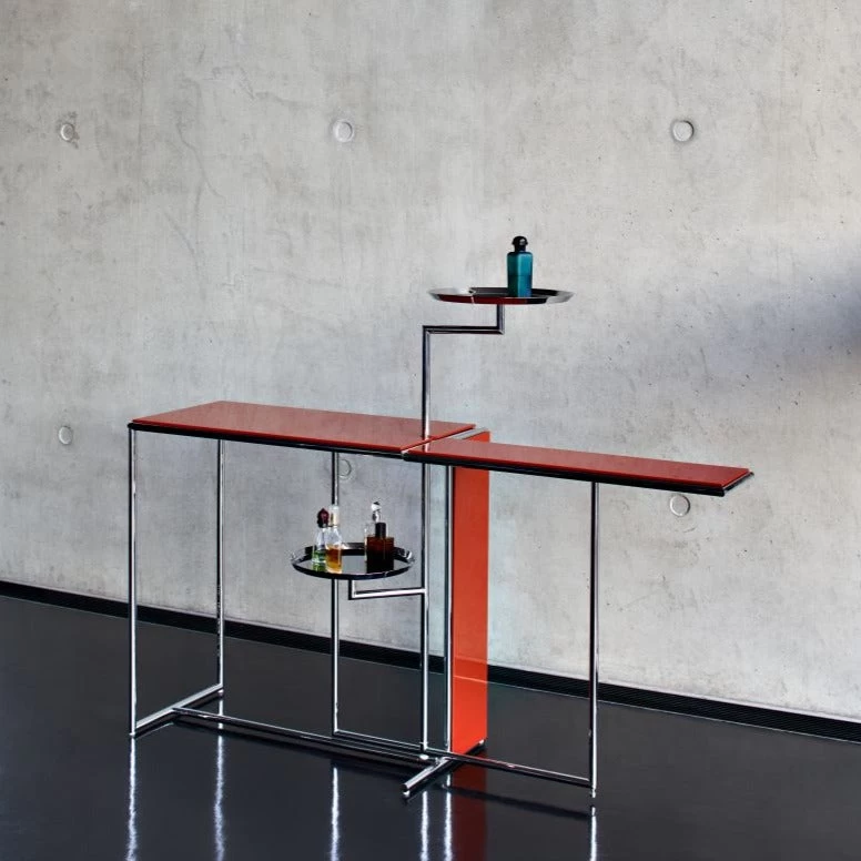 Irish-born Eileen Gray was a pioneer of modern design in the 20s and 30s, and this piece was used as the tea table at her iconic summer house. The RIVOLI table is constructed primarily of chrome-plated steel, with a high-gloss lacquer foldable tabletop and two swivelling trays at varying heights. This versatile and original piece is sure to delight.