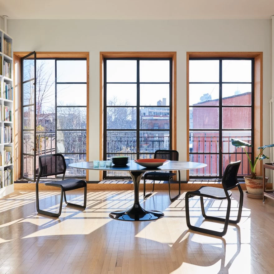 With the Pedestal Collection, Eero Saarinen resolved the “ugly, confusing, unrestful world” underneath tables and chairs. The collection is a defining accomplishment of modern design and timeless addition to your home—a true classic. 78″ table seats 6 people.