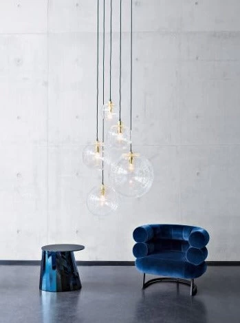 Each of the spheres of the Selene lamp series is hand-made and hand-blown. A process that has not changed over the course of centuries and requires enormous, masterful skills. Reflections and movements in the glass provide Selene with its special brilliance and vividness. A simply cylindrical socket changes the character of the lamp through varying materials. Alone or in a group suspended in different sizes, Selene offers plenty of design freedom.