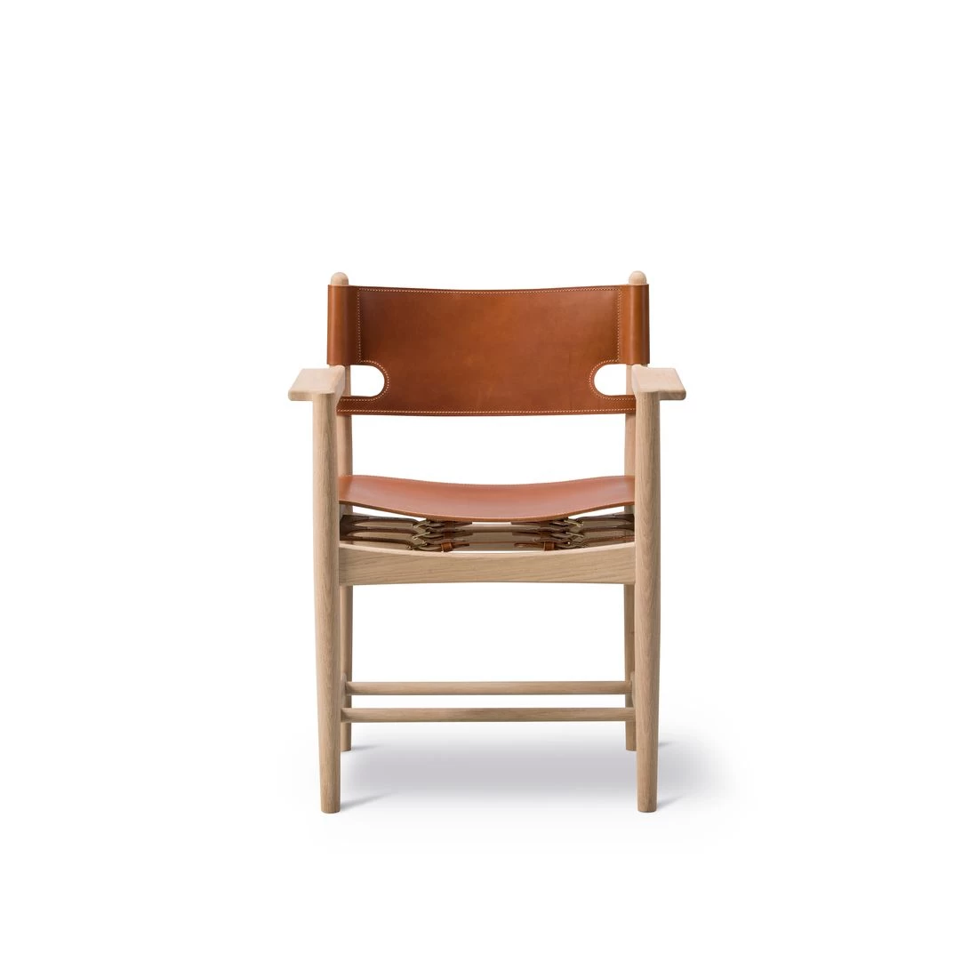 Børge Mogensen drew much of his inspiration from traditional chairs of other cultures, such as English Windsor chairs and the Shaker movement in America. In Spain, a traditional way of making furniture involved the use of sturdy leather to construct the seat as part of a wooden structure – hence the name of what went on to become one of Mogensen’s most celebrated designs.