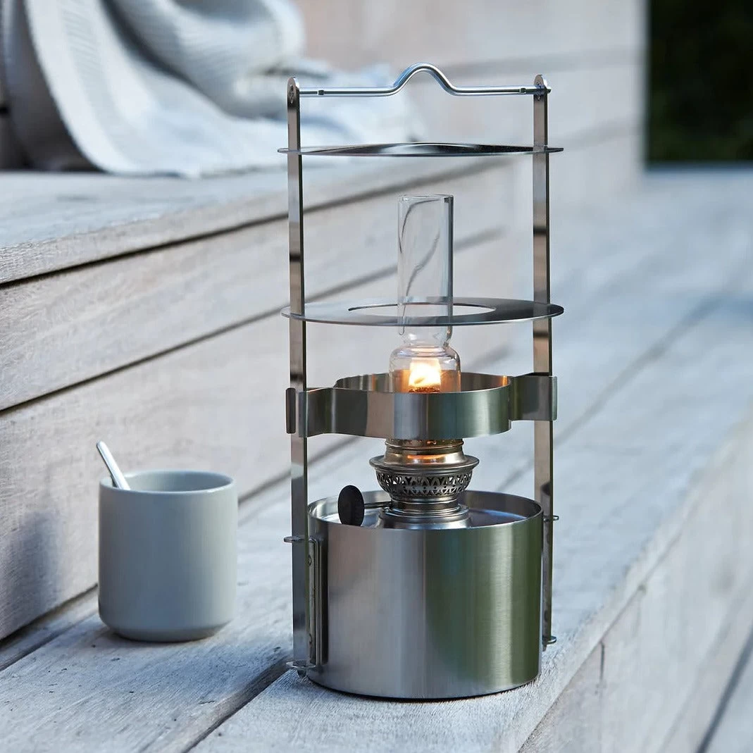 Stelton’s Ship’s Lamp in satin polished stainless steel is the classic ship’s lamp in an updated, minimalist and cylinder design, which keeps the wind out – whether you are in maritime surroundings or in your garden. The ship’s lamp for kerosene/lamp comes in two sizes and can be placed on the table, the ground or hung with a special steel holder