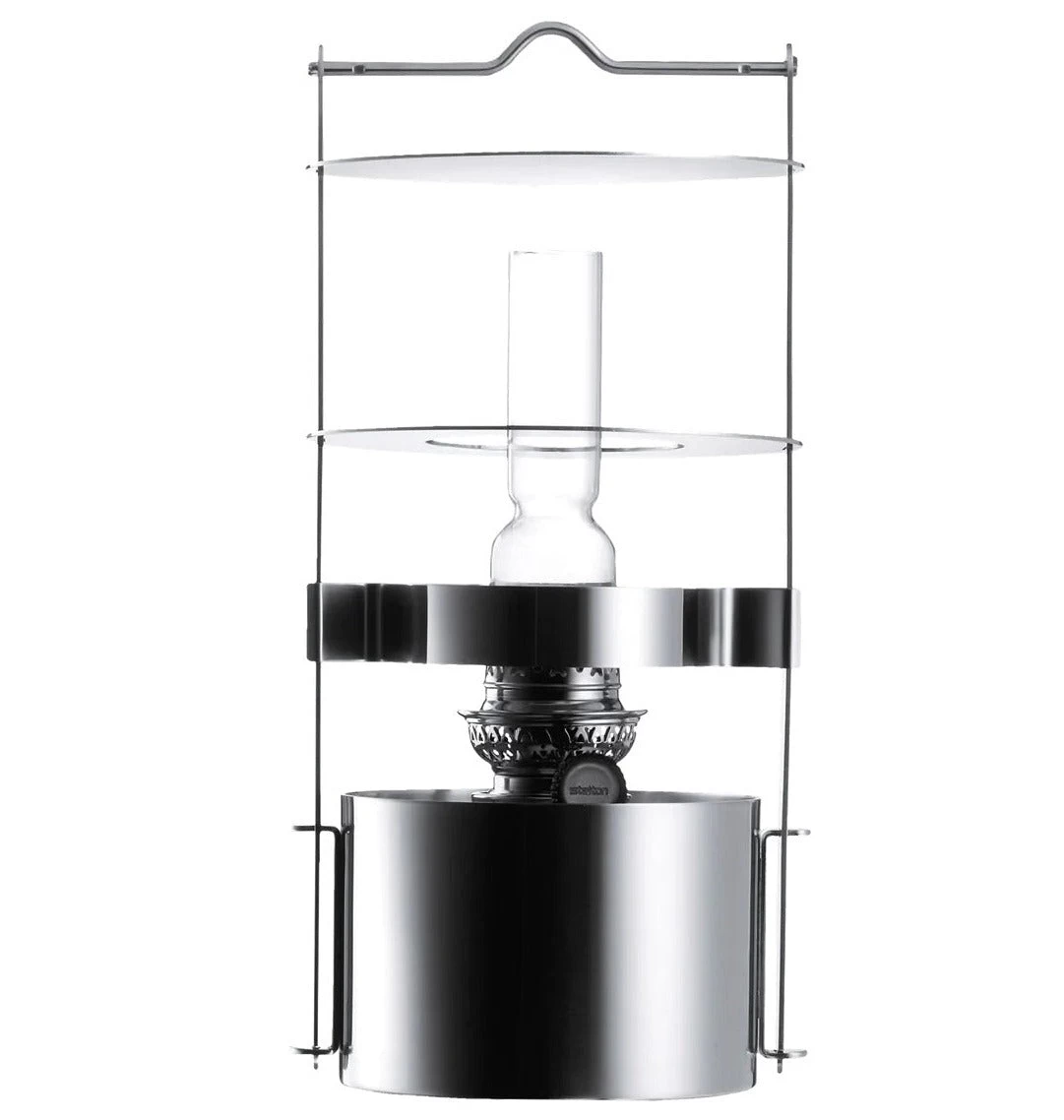 Stainless steel and glass oil/kerosene lamp. Available in two sizes: