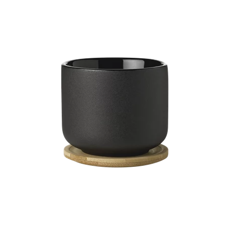 The Theo tea mug is made of blackish-brown stoneware, in the same style as the simple, Scandinavian, clean lines of the teapot. The mug has a bamboo coaster, which adds a warm, tranquil touch. Avoid cup rings on the table with this sustainable, bamboo coaster.