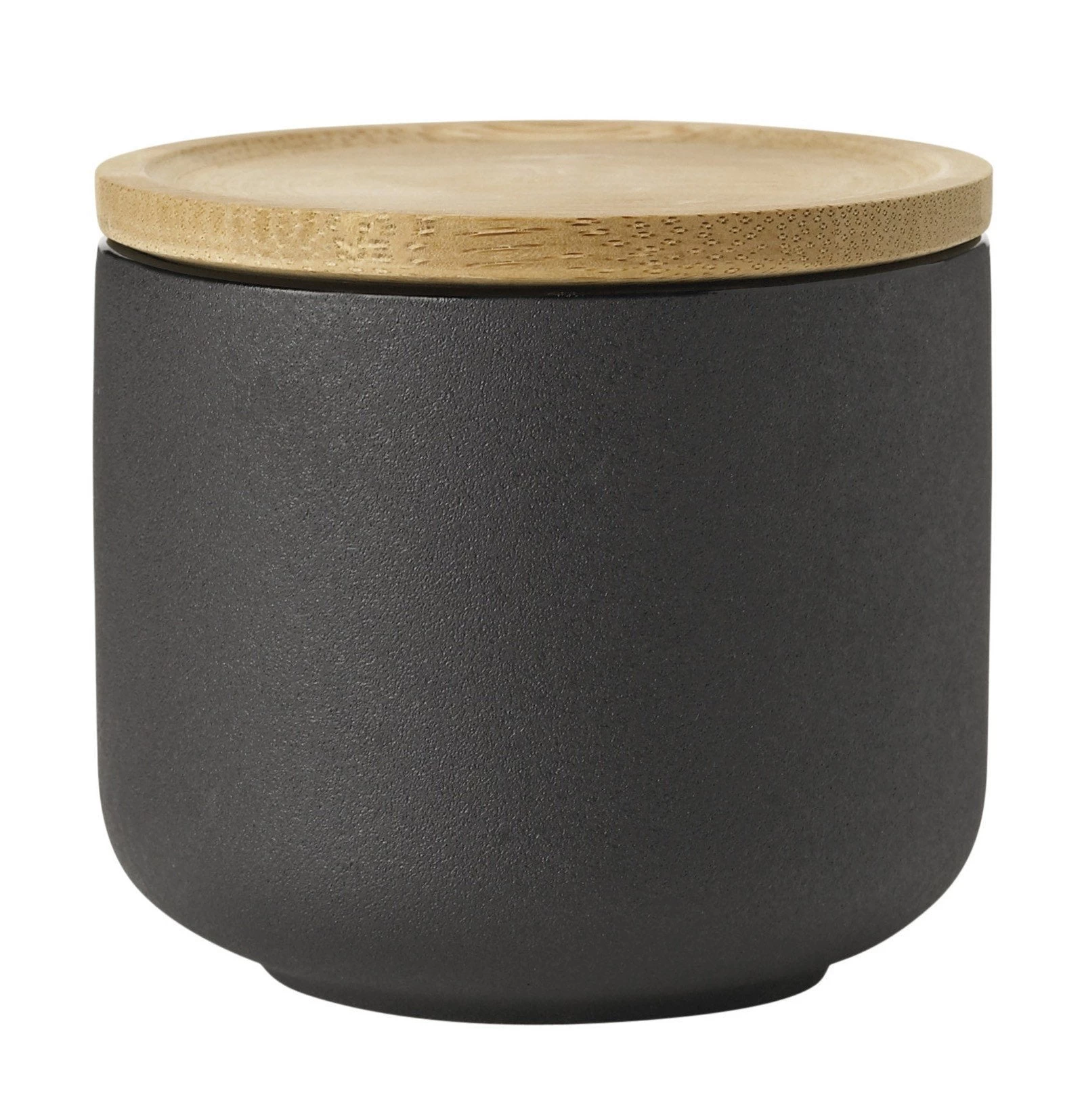 Black stonewear mug with bamboo saucer/lid.Â