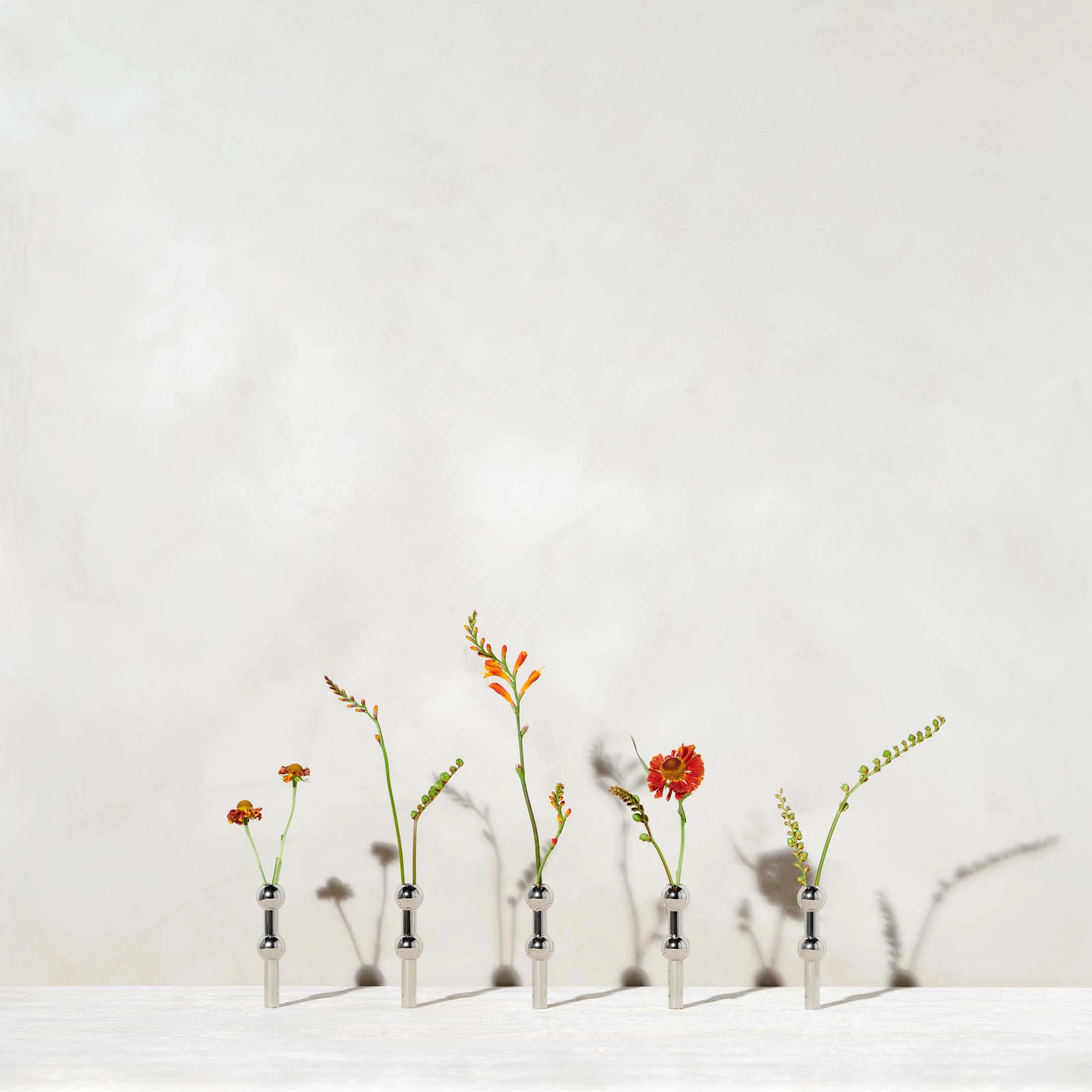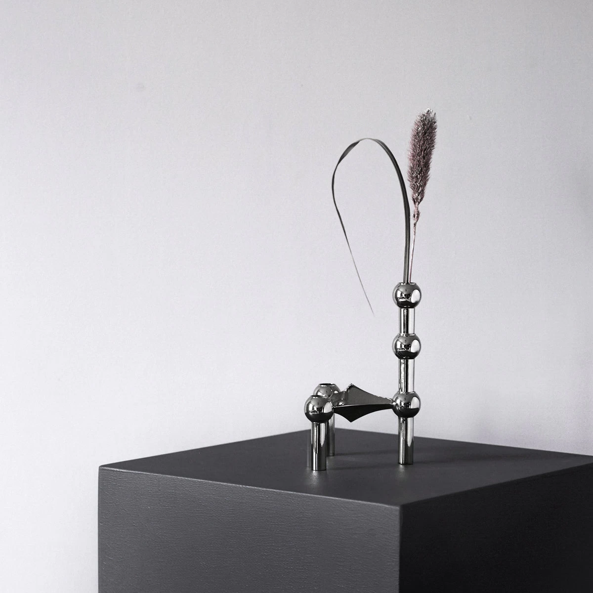 Launched in 2019, the STOFF Nagel Vase is one of the latest members of the STOFF Nagel family. It is designed as a natural continuance of the characteristic STOFF Nagel expression and can be combined with both the candle holders, the bowl, and the stand. The vase adds an extra dimension to the classic design and allows you to include a colourful flower decoration of your choice in your sculpture. Depending on the season and trends both fresh and dried flowers go beautifully into the vase.