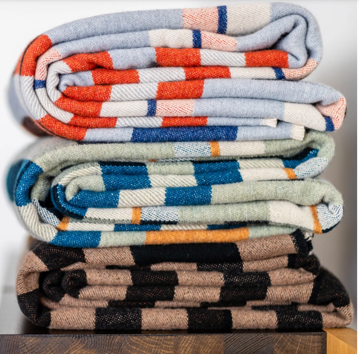 In 2019, as part of the Bauhaus centenary celebrations, Wallace Sewell were authorised to create a re-edition of Gunta Stölzl’s original ‘Prellerdecke’ blanket.  The project was initiated by Jörg Klambt, founder of Designshop at Bauhaus Dessau; where in 1926, the first Prellerhaus blankets were made in the weaving workshops.  The original design having been lost, Wallace Sewell have realized and recreated the design, with help from Gunta Stölzl’s daughter, Monika Stadler, and archive drawings and photographs.Â