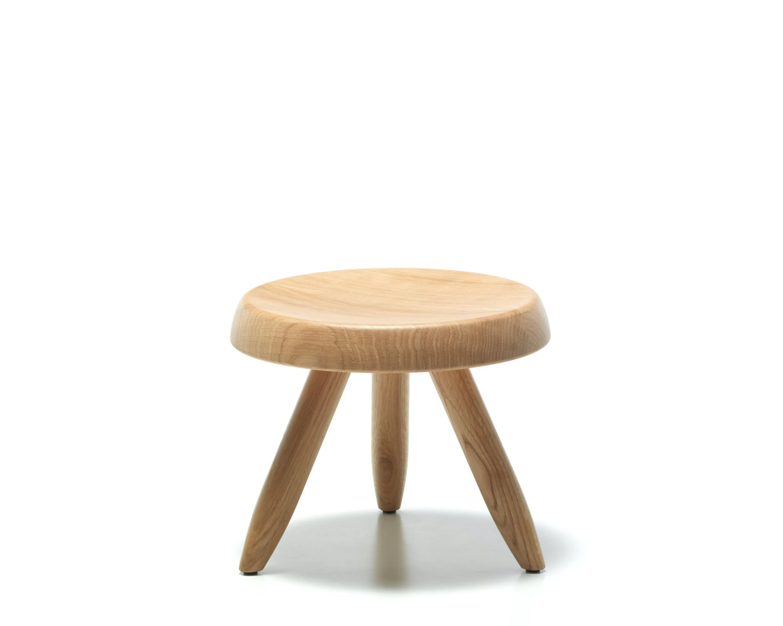 Reclaiming simple materials and basic shapes, with an eye to architecture and mountain life, led to the creation of two historic design low table-stools inspired respectively by the milking stool used by mountain shepherds in the French town much loved by the designer and architect Charlotte Perriand. The turned seat meets the stylized legs both in the Tabouret Berger, a lower version with three legs in hand-turned solid wood, and in the taller Tabouret Méribel, which has three angular legs.