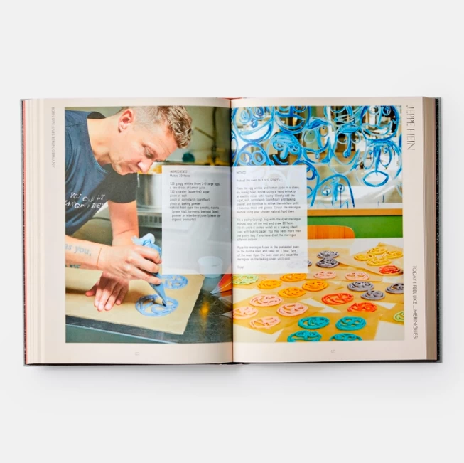 Creativity doesn’t stop at an artist’s studio door – for many, it continues into the kitchen. For the first time, more than 70 artists, including Ghada Amer, Jimmie Durham, Studio Olafur Eliasson, Subodh Gupta, Nikolai Haas, Jeppe Hein, Carsten Höller, Dorothy Iannone, Ragnar Kjartansson, John Lyons, Philippe Parreno, Nicolas Party, Zina Saro-Wiwa, Tiffany Sia, and Rirkrit Tiravanija, and others, have been invited to share and illustrate a recipe of their own. These are either the best culinary concoctions they have ever invented, or an especially meaningful dish. The result is an exciting range of contributions spanning all manner of meals and drinks, both savory and sweet, from around the globe, brilliantly brought to life by a wealth of sketches, photographs, collages, paintings, and personal snaps.