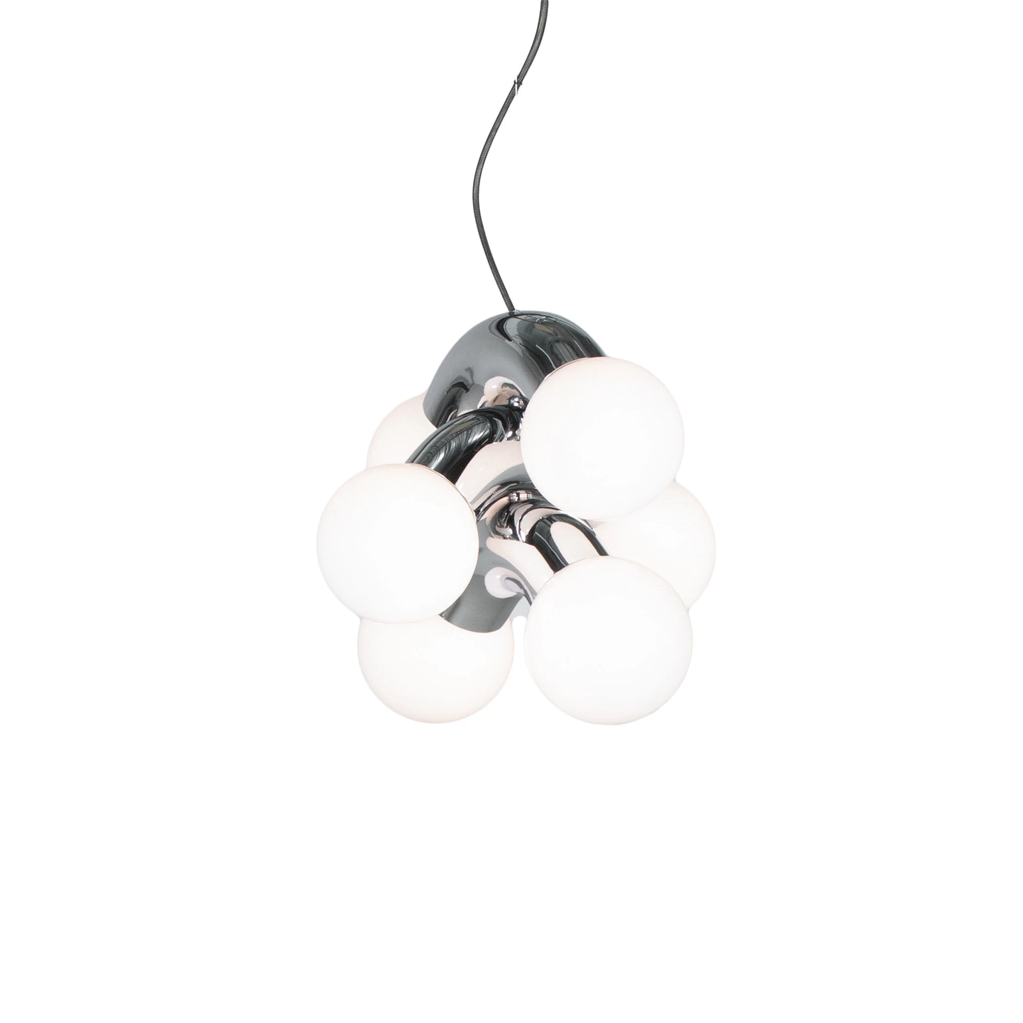 Pendant light with a steel frame and opal glass globes. Available in chrome or midnight chrome finish. 110–120V.