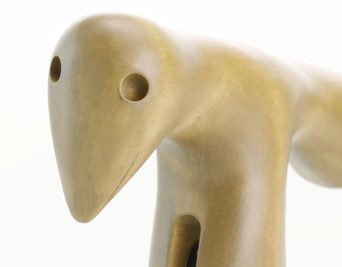 Today, the original wooden bird is held by the Vitra Design Museum as a part of the Girard Archive. In close cooperation with the Girard family, Vitra has brought this figure back to life: although its features are reduced to a minimum, the archaic-looking Girard Bird (1945) by Alexander Girard is clearly recognizable as an avian creature. The archaic-looking figure, made from solid maple wood sourced in France, can stand on its feet or tail.