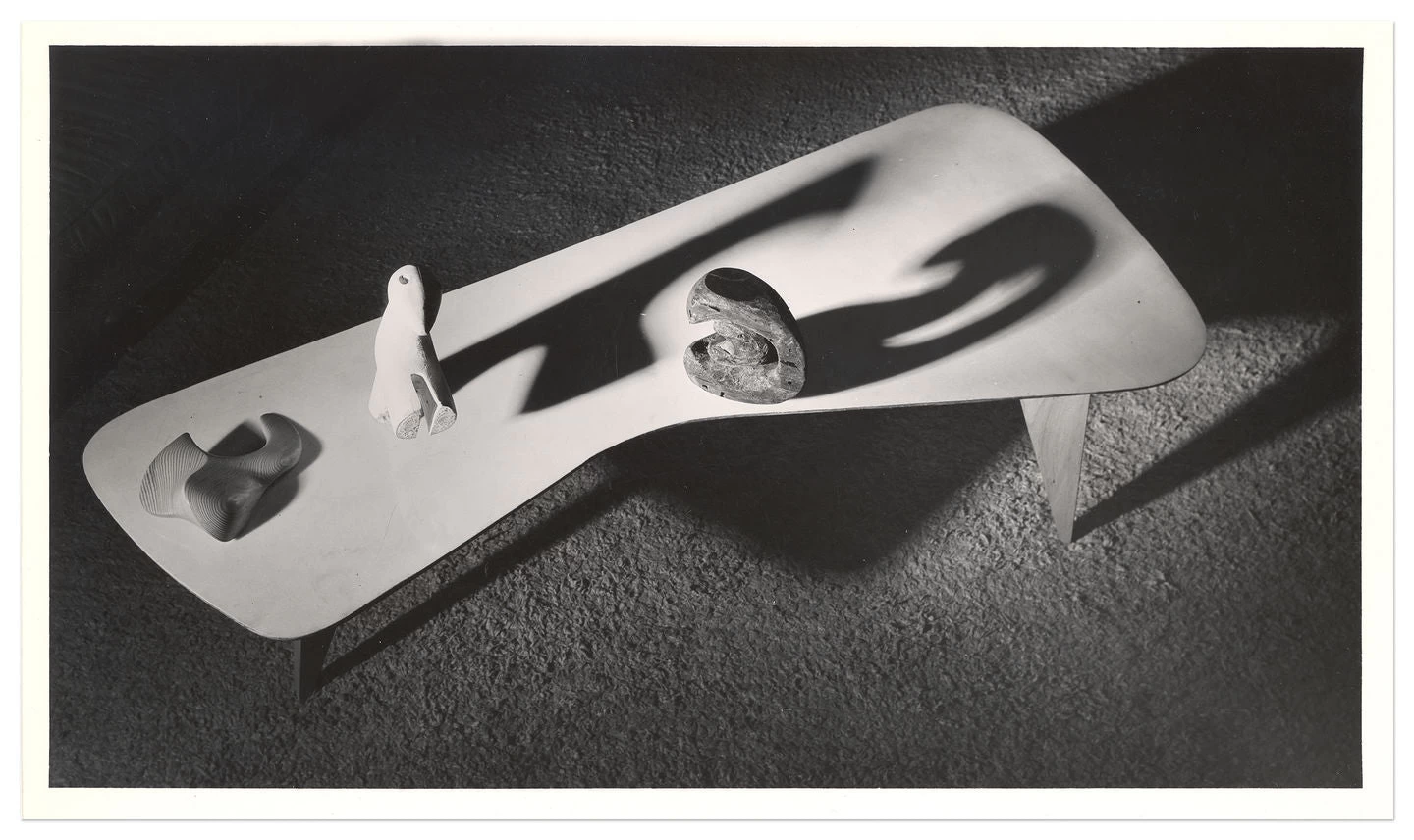 In the mid-1940s, the designer Alexander Girard experimented with a series of abstract sculptures made of glass, foam rubber, corrugated cardboard, driftwood, plywood and solid wood – including an avian figure carved by hand out of wood from an apple tree. These sculptures were presented in the July 1945 issue of the American magazine ‘Arts & Architecture’.