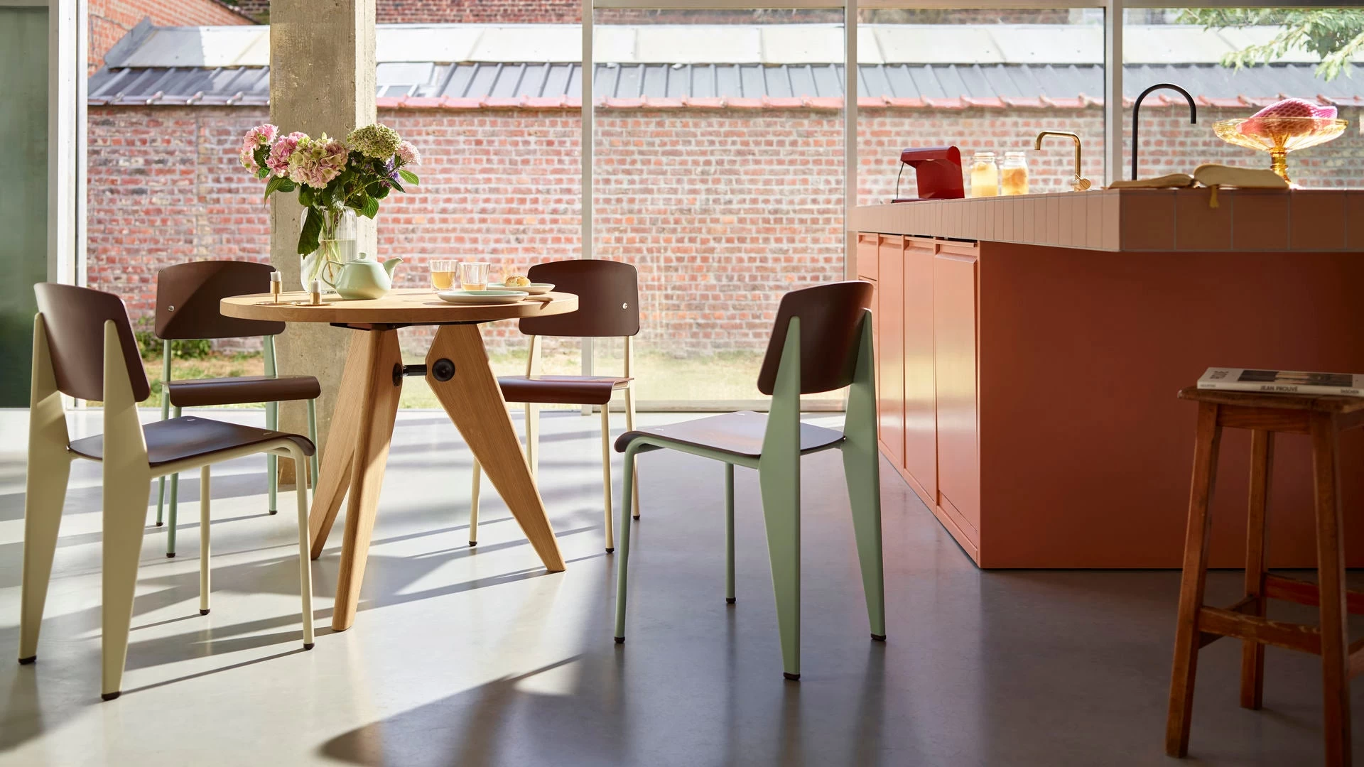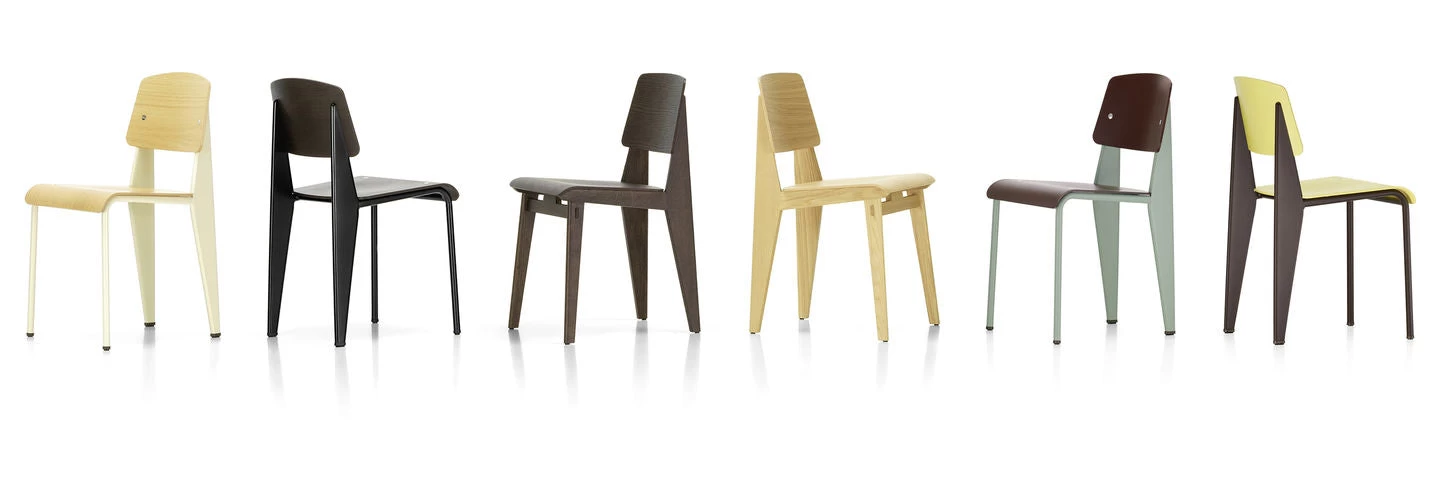 The Standard chair by Jean Prouvé has evolved into one of the most famous classics of the French ‘constructeur’. The seat and backrest of this understated, iconic chair are available in various types of wood, and the metal frame comes in different colours.
